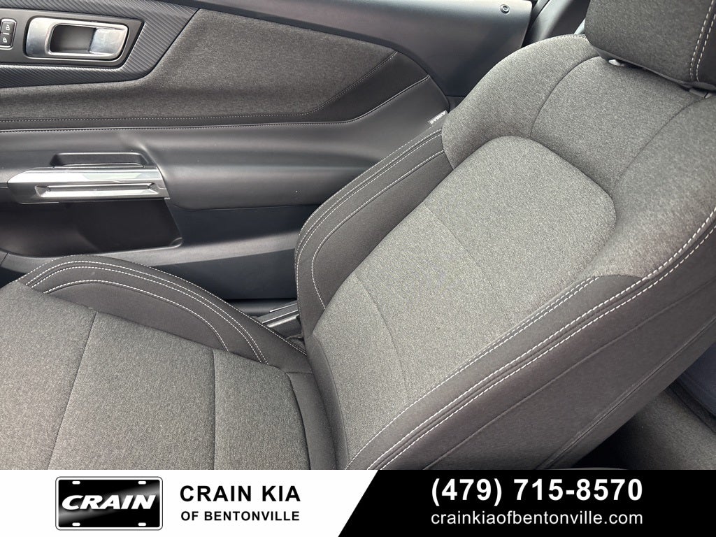 19 Brembo Brake System w/Performance Linings, 3.55 Limited Slip Rear Axle, 4-Wheel Disc Brakes, 6 Speakers, ABS brakes, Active Valve Performance Exhaust, Air Conditioning, Alloy wheels, AM/FM radio, AM/FM Stereo, Auto High-beam Headlights, Automatic temperature control, Black GT Pony Badges, Black Mirror Caps, Brake assist, Bumpers: body-color, Cloth Bucket Seats, Compass, Delay-off headlights, Driver door bin, Driver vanity mirror, Dual front impact airbags, Dual front side impact airbags, Electronic Stability Control, Emergency communication system: 911 Assist, Equipment Group 300A Standard Package, Exterior Parking Camera Rear, Four wheel independent suspension, Front anti-roll bar, Front Bucket Seats, Front Center Armrest, Front reading lights, Fully automatic headlights, Grabber Blue Brake Calipers w/White Logo, Headlamps w/Black Bezels, Illuminated entry, Knee airbag, Leather Shift Knob, Leather steering wheel, Low tire pressure warning, Mustang Nite Pony Package, Occupant sensing airbag, Outside temperature display, Overhead airbag, Overhead console, Painted Black Roof, Panic alarm, Passenger door bin, Passenger vanity mirror, Power door mirrors, Power steering, Power windows, Premium Floor Liners Front & Rear, Radio data system, Rain sensing wipers, Rear anti-roll bar, Rear Parking Sensors, Rear window defroster, Red Painted Brake Calipers w/White Logo, Remote keyless entry, Speed control, Speed-sensing steering, Speed-Sensitive Wipers, Split folding rear seat, Spoiler, Sport steering wheel, Steering wheel mounted audio controls, SYNC 4.0 QNX, Tachometer, Telescoping steering wheel, Tilt steering wheel, Traction control, Trip computer, Variably intermittent wipers, Voltmeter, Wheels: 18 x 8.5 Ebony Black Painted Aluminum, Wheels: 19 x 8.5 Ebony Black-Painted Aluminum.